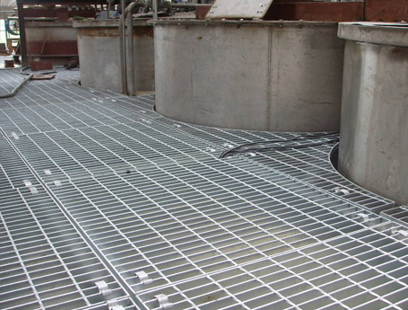 污水廠用鋼格板 污水處理廠用鋼格柵其特點(diǎn)為: 1、強(qiáng)度高:牢固的網(wǎng)格壓焊結(jié)構(gòu)使其具有高承載; 2、結(jié)構(gòu)輕:便于吊裝等特點(diǎn); 3、外形美觀,經(jīng)久耐用:熱浸鋅表面處理使其具有相當(dāng)好的防腐能力,表面光澤美觀; ···